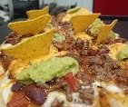 Tomate, mozzarella, carne de ternasco, chili, guacamole, crema de chedar y nachos